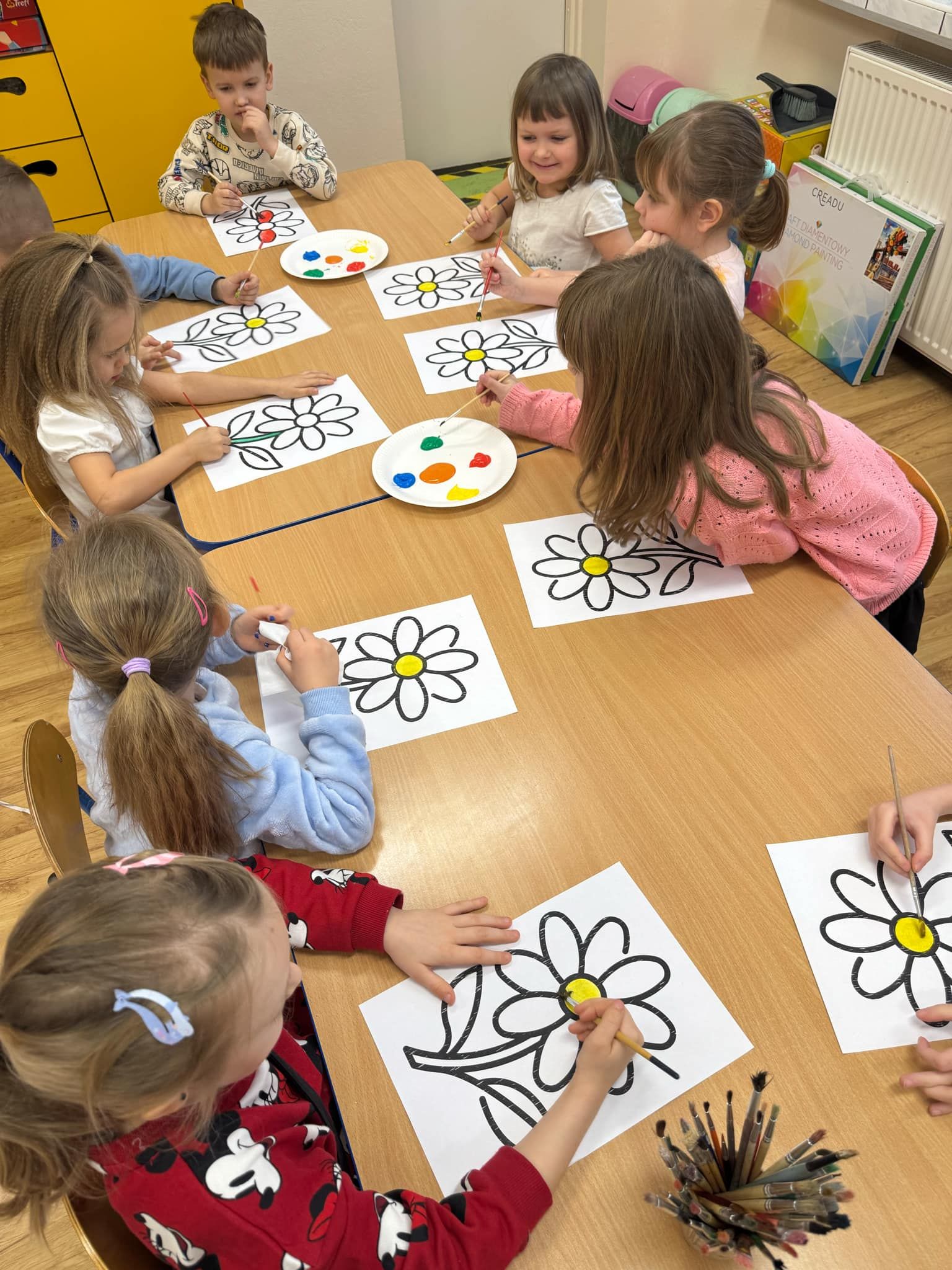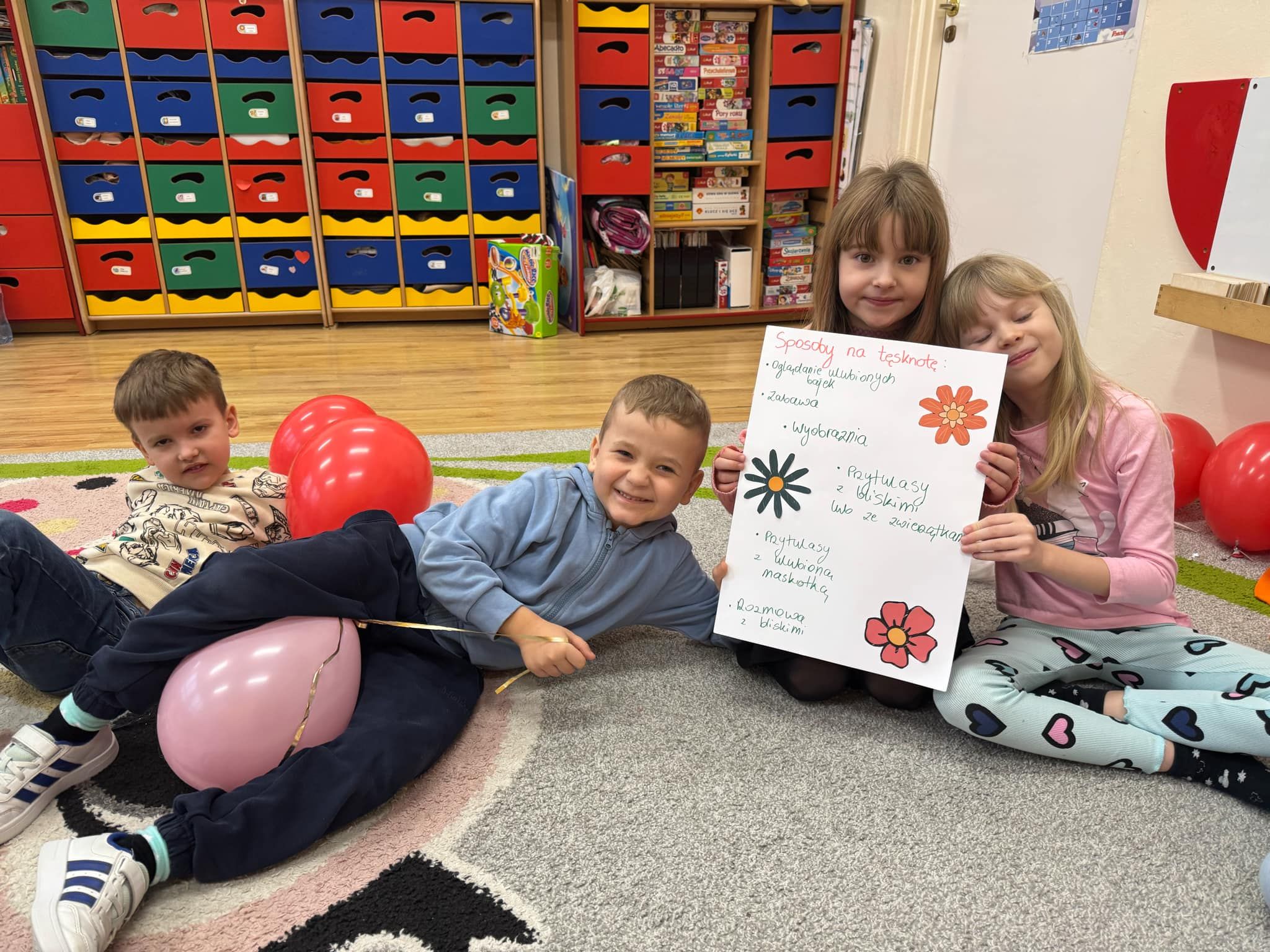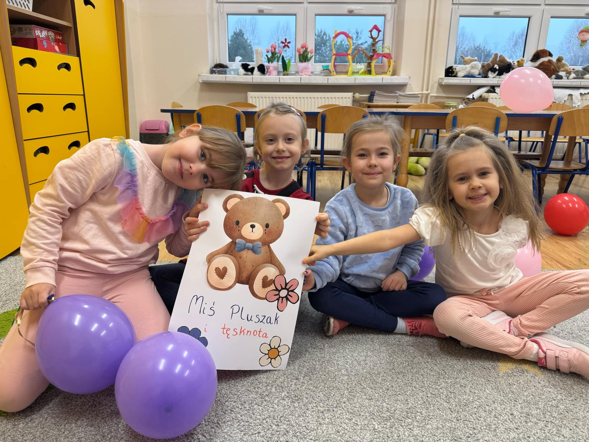 Przedszkolaki rozpoczynają swoją przygodę z Ogólnopolskim Projektem Edukacyjnym – ,,W krainie uczuć”. Zapoznaliśmy się dziś z bajką ,,Miś Pluszak i tęsknota”. Dzieci wysłuchały bajki, dowiedziały się czym jest tęsknota oraz jak wpływa na zachowanie. Następnie wspólnie z panią psycholog poszukały sposobów na tęsknotę aby nauczyć się radzić sobie z tym uczuciem. Każdy przedszkolak wykonał również pracę plastyczną „Magiczny kwiat tęsknoty”.
