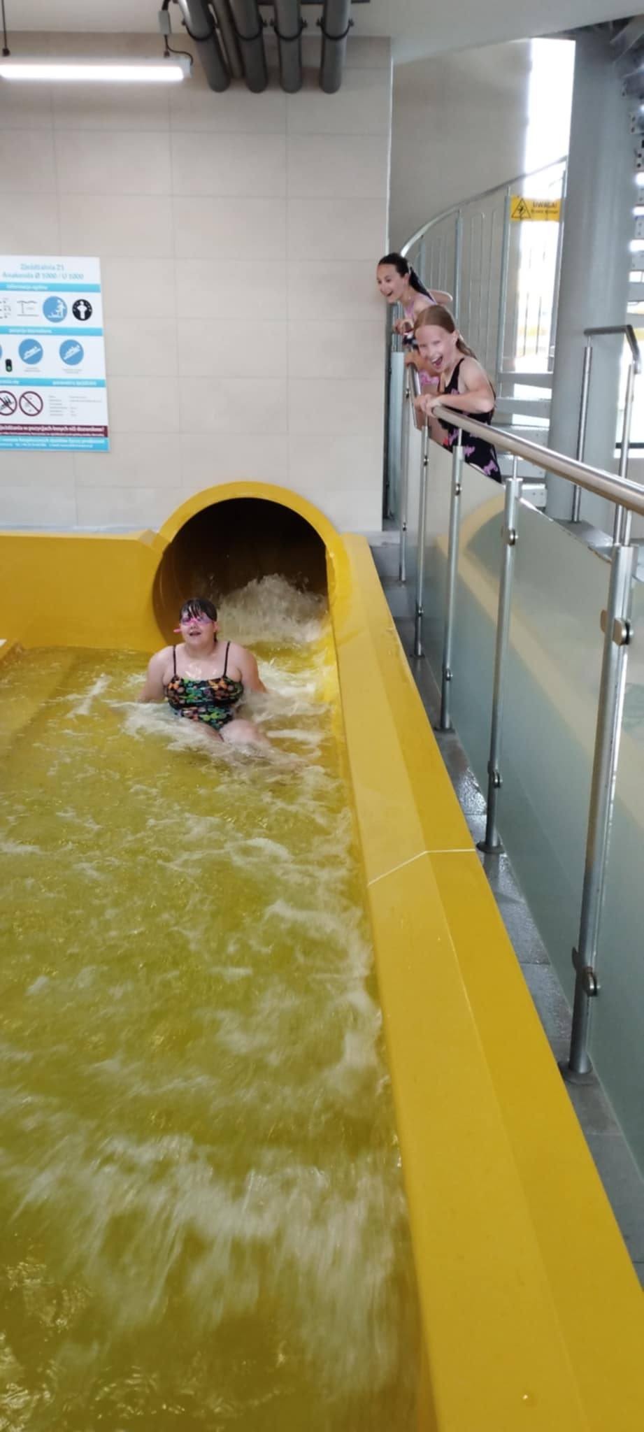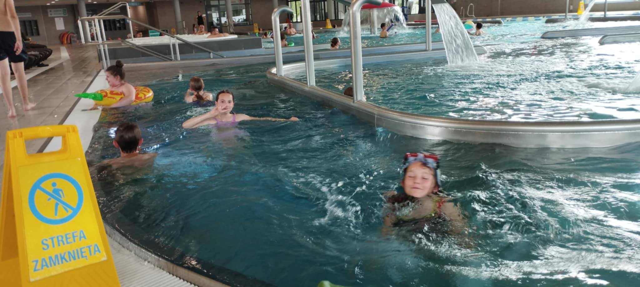 Mamy postulat naszych uczniów: „Wszystkie lekcje na basenie!” Opublikowano w dniu 13 czerwca 2025 Autor: Admin Kolejny wyjazd naszych uczniów na częstochowski basen. Zjeżdżanie, pływanie, dla niektórych pierwsze próby samodzielnego unoszenia się na wodzie, a przede wszystkim relaks – nasi pływacy już planują kolejny wyjazd