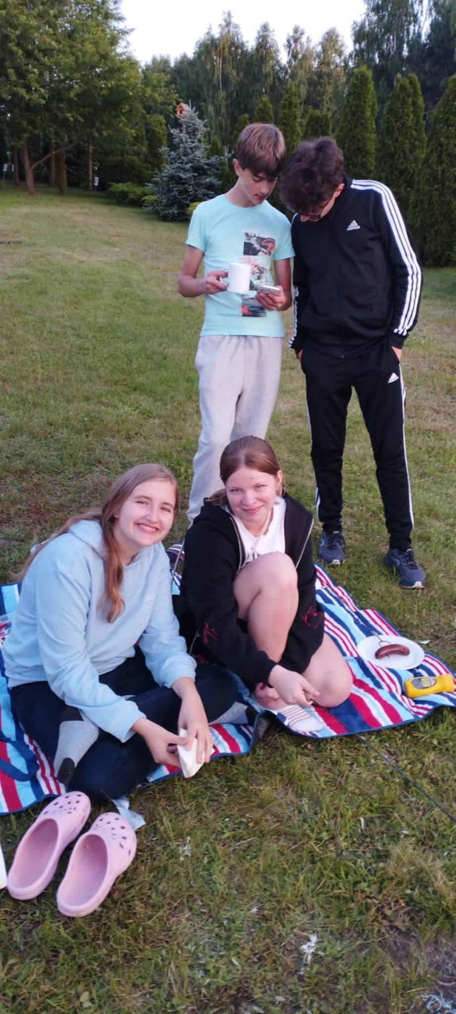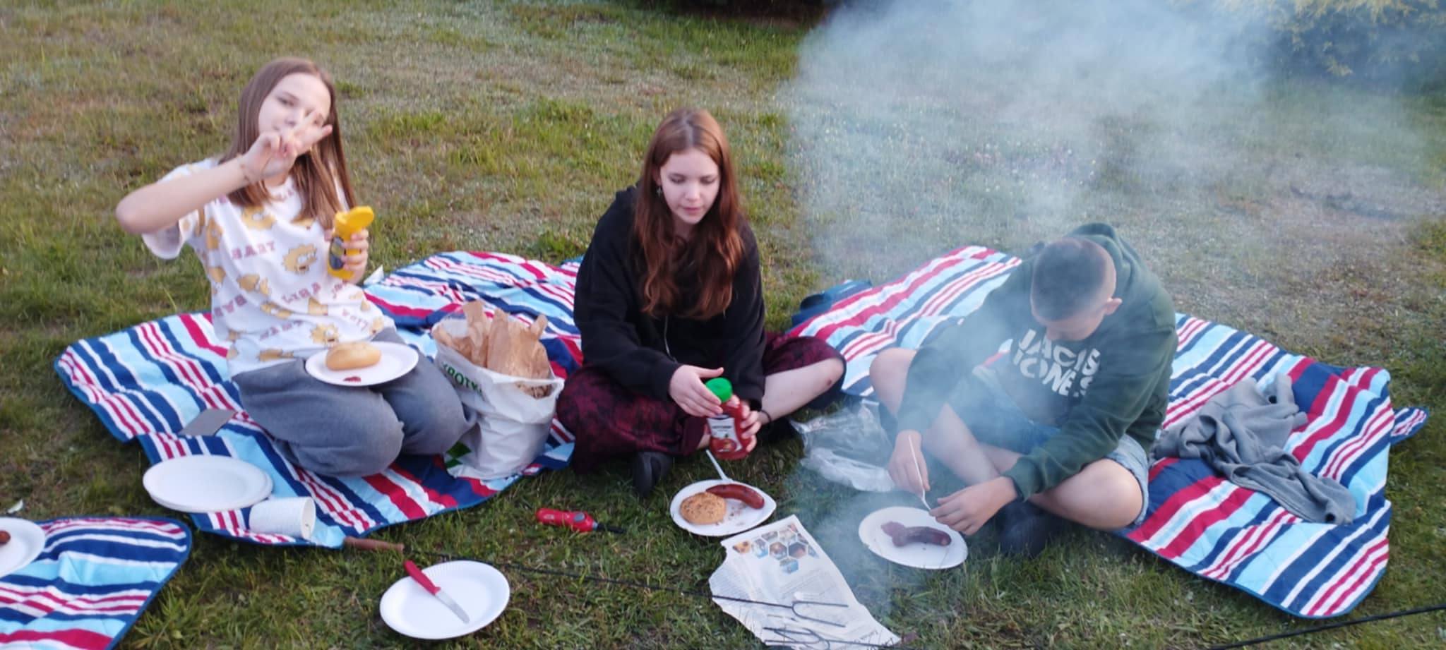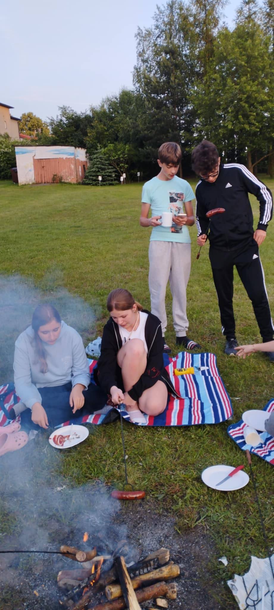 Uczniowie klasy VII spędzili niezapomniane chwile w murach naszej szkoły. Wszystko za sprawą minionej piątkowej nocy (13.06.2025r.), którą zamiast spędzić osobno w swoich domach postanowili potraktować jako czas na wspólną zabawę i integrację. Zaczęło się od ogniska z kiełbaskami, które dodały im sił na zabawę na podwórku szkolnym. Później nadszedł czas na straszny seansik, podczas którego okazało się, że nie każdy śmiałek jest takim śmiałkiem, za jakiego się uważa.