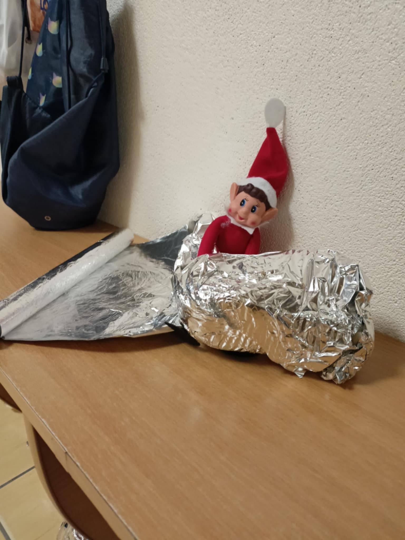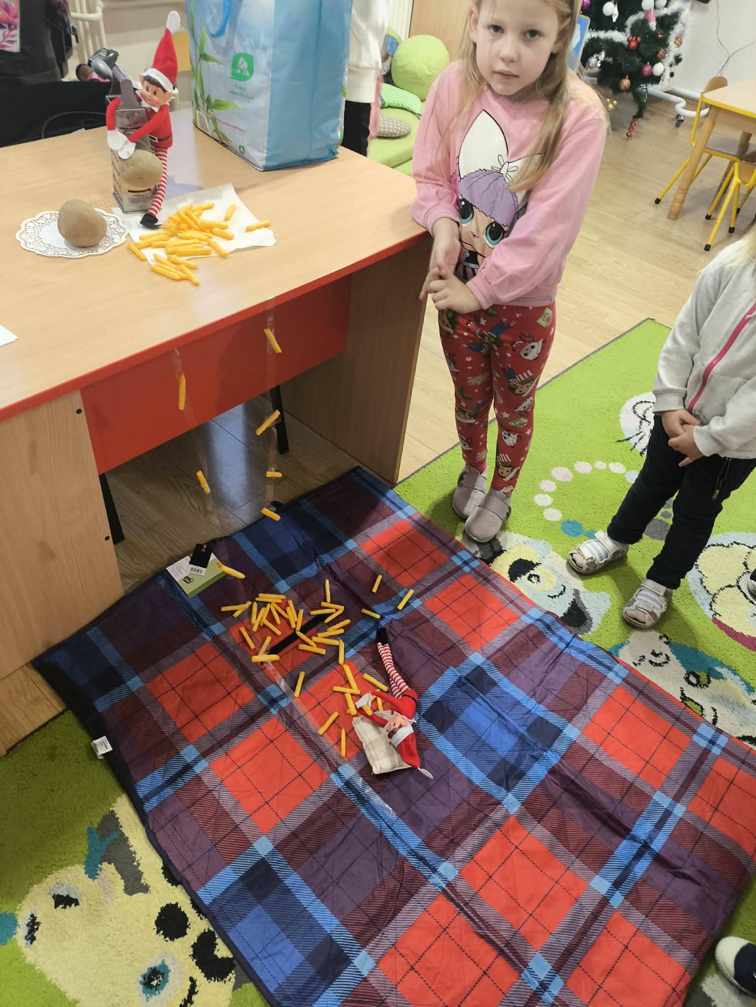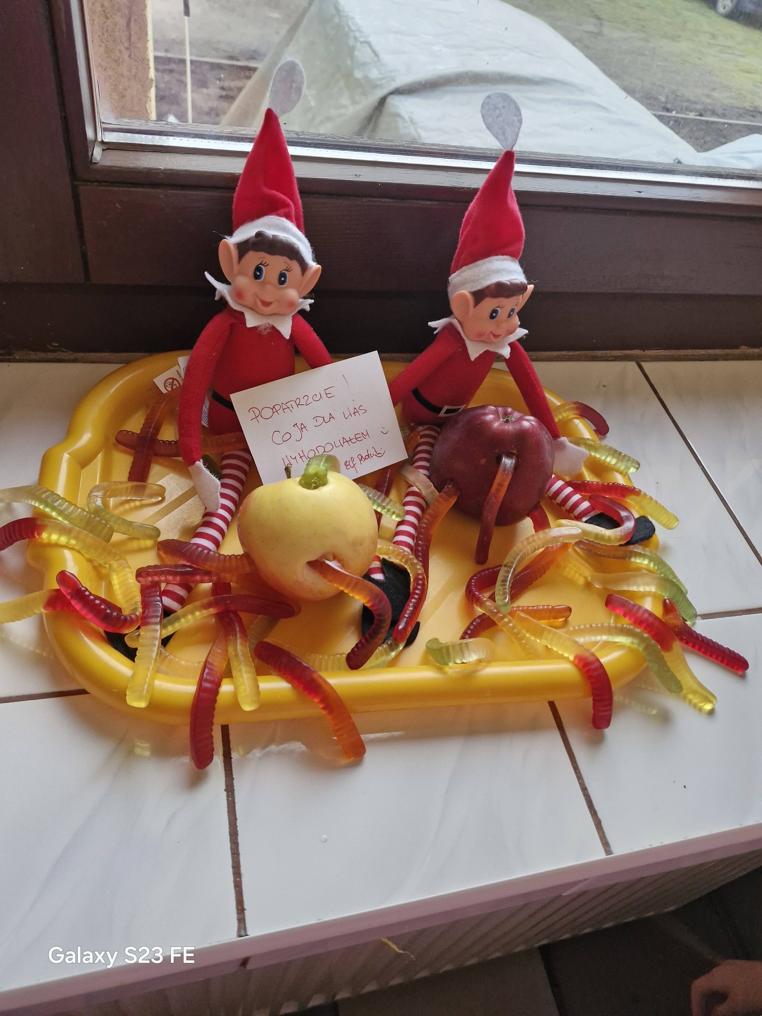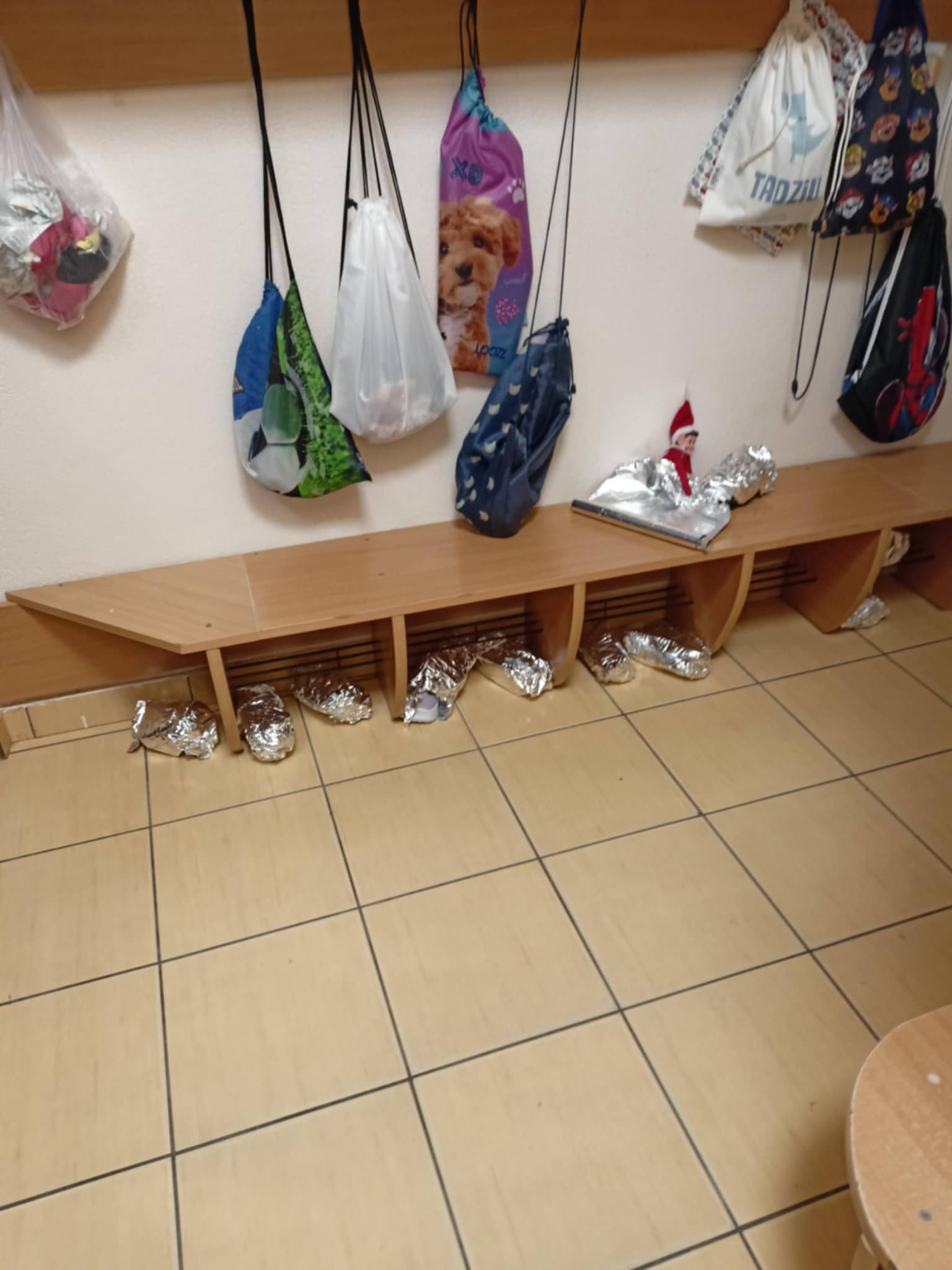 Były zapakowane buty, „robaki” w jabłkach z podwieczorku, skoki za oknem i barykada drzwi naszej Pani Dyrektor. Całe szczęście, Elfy się z nami pożegnały…. dość hucznie