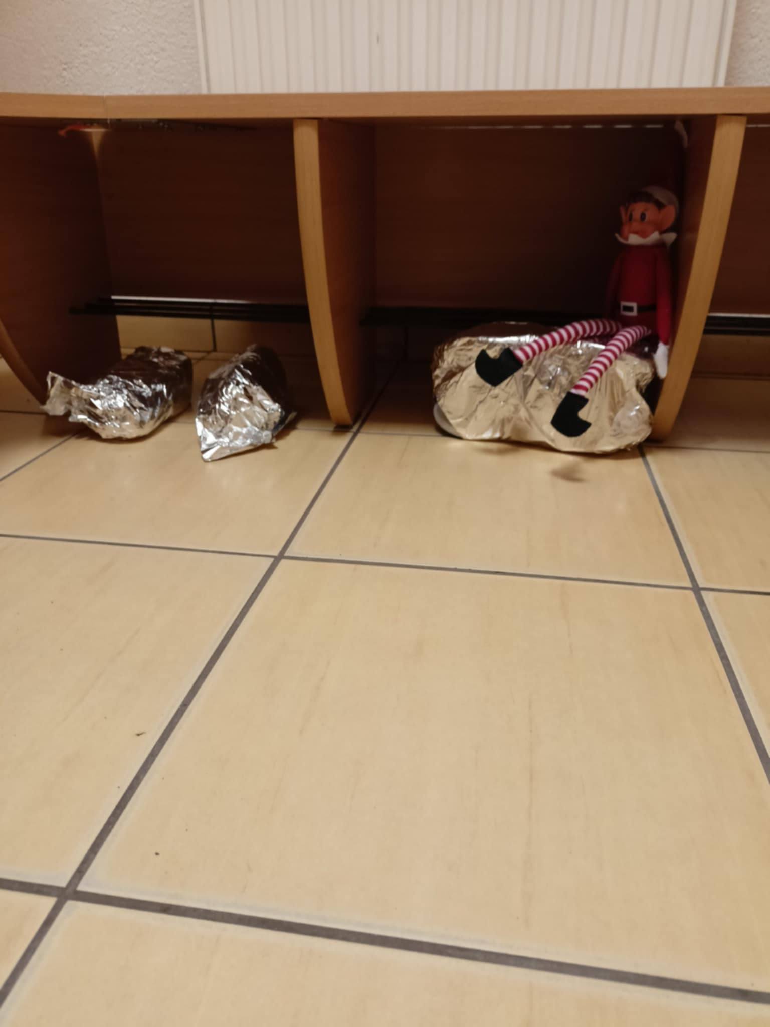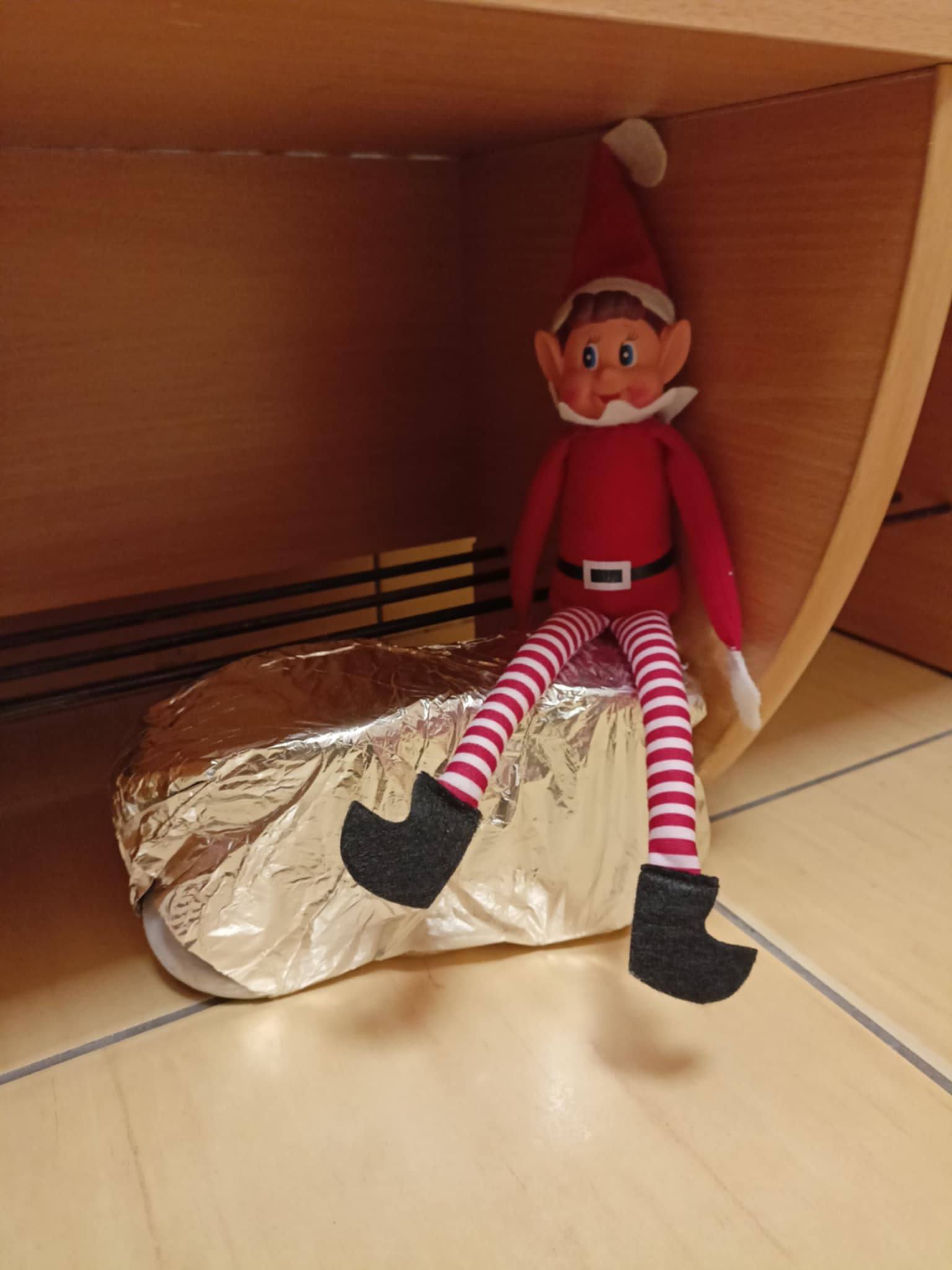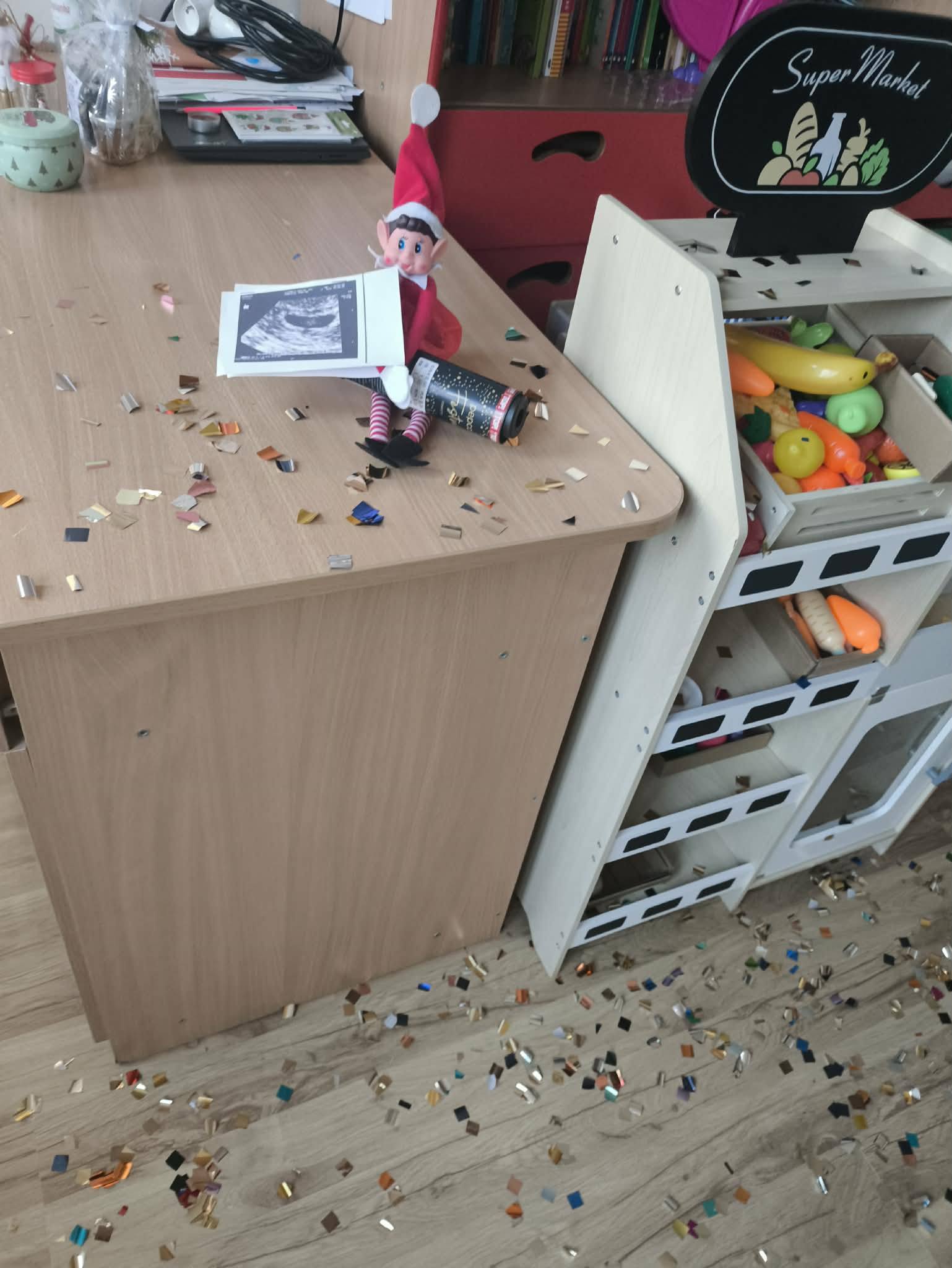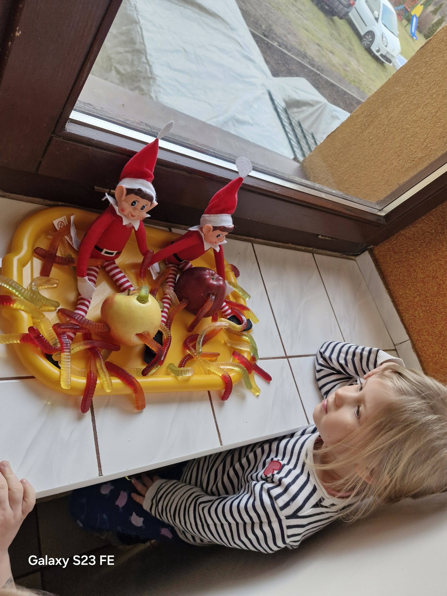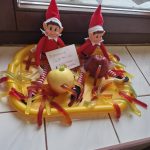 Były zapakowane buty, „robaki” w jabłkach z podwieczorku, skoki za oknem i barykada drzwi naszej Pani Dyrektor. Całe szczęście, Elfy się z nami pożegnały…. dość hucznie