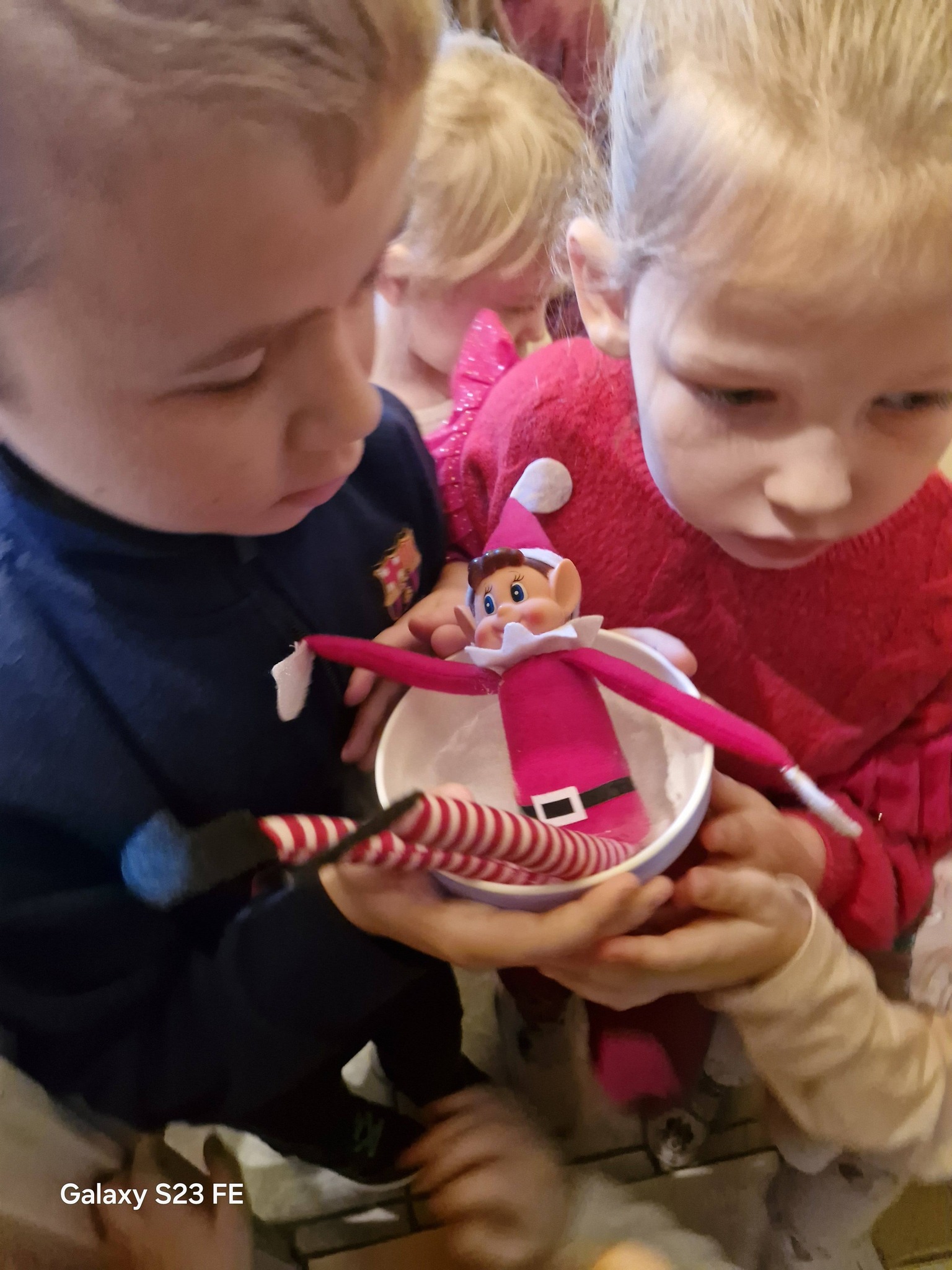 Od pierwszego grudnia do naszych przedszkolaków przyszedł Elf Psotnik – posłaniec św.Mikołaja. Jego pierwszym zadaniem była obserwacja zachowania przedszkolaków ale gdy pewnego dnia były już dwa elfy to zrobiły się z tego niezłe psoty
