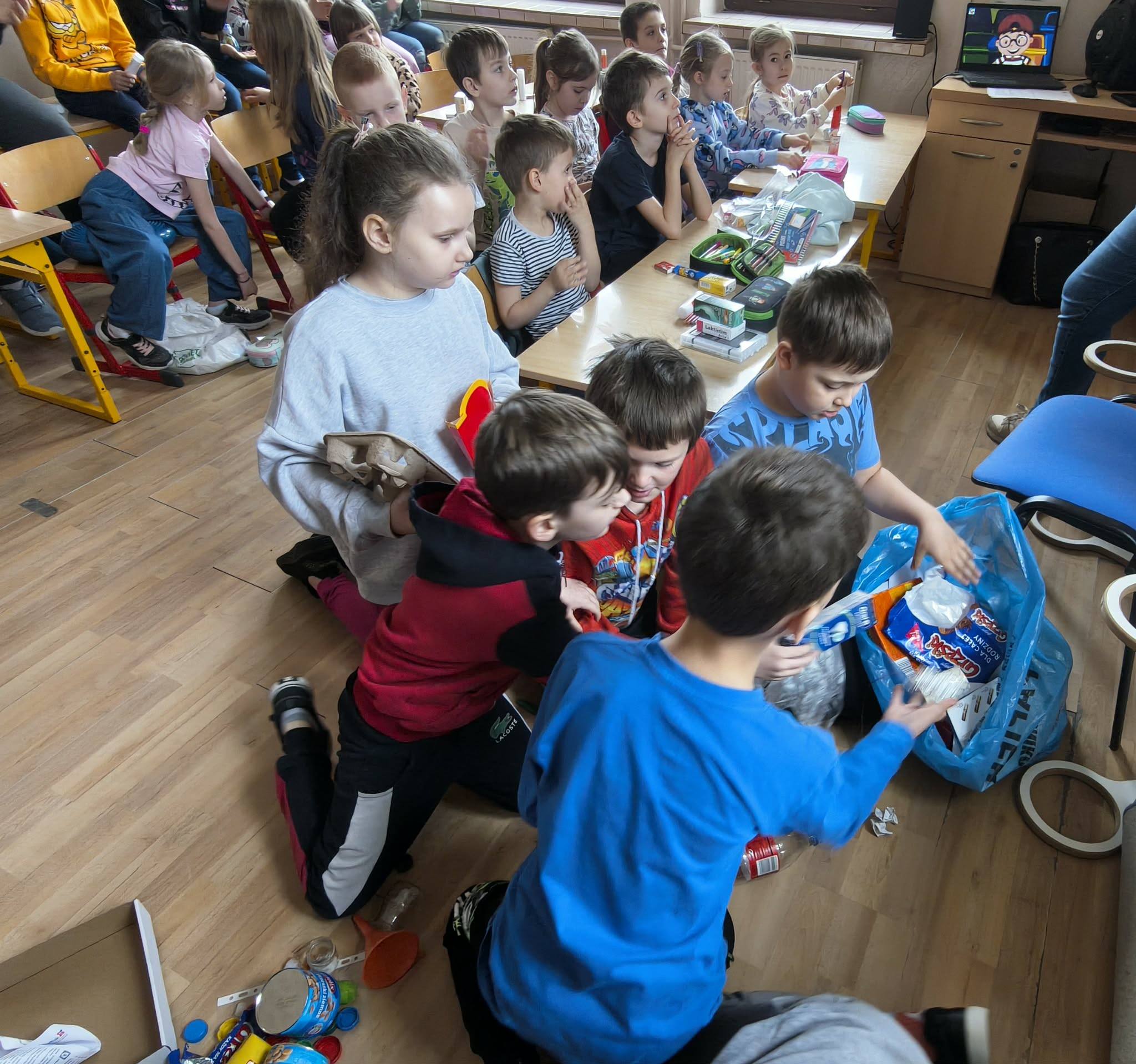 Celem zajęć było uświadomienie uczniom, jak ich codzienne decyzje i działania mogą wpływać na środowisko. Na podstawie materiałów filmowych dzieci dowiedziały się, że ekolodzy odkryli w głębinach Oceanu Spokojnego ogromną „górę śmieci”, zajmującą obszar dwukrotnie większy niż powierzchnia Teksas. Składa się ona głównie ze zużytych plastikowych butelek, nakrętek oraz reklamówek, które prądy oceaniczne przyniosły z wybrzeży.